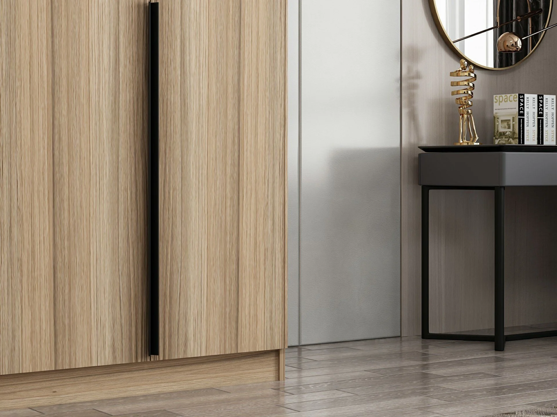 – تصميم متعدد الأبواب: تتميز الخزانة بتصميم متعدد الأبواب، مما يوفر مساحة تخزين كبيرة ومنظمة للملابس والإكسسوارات.